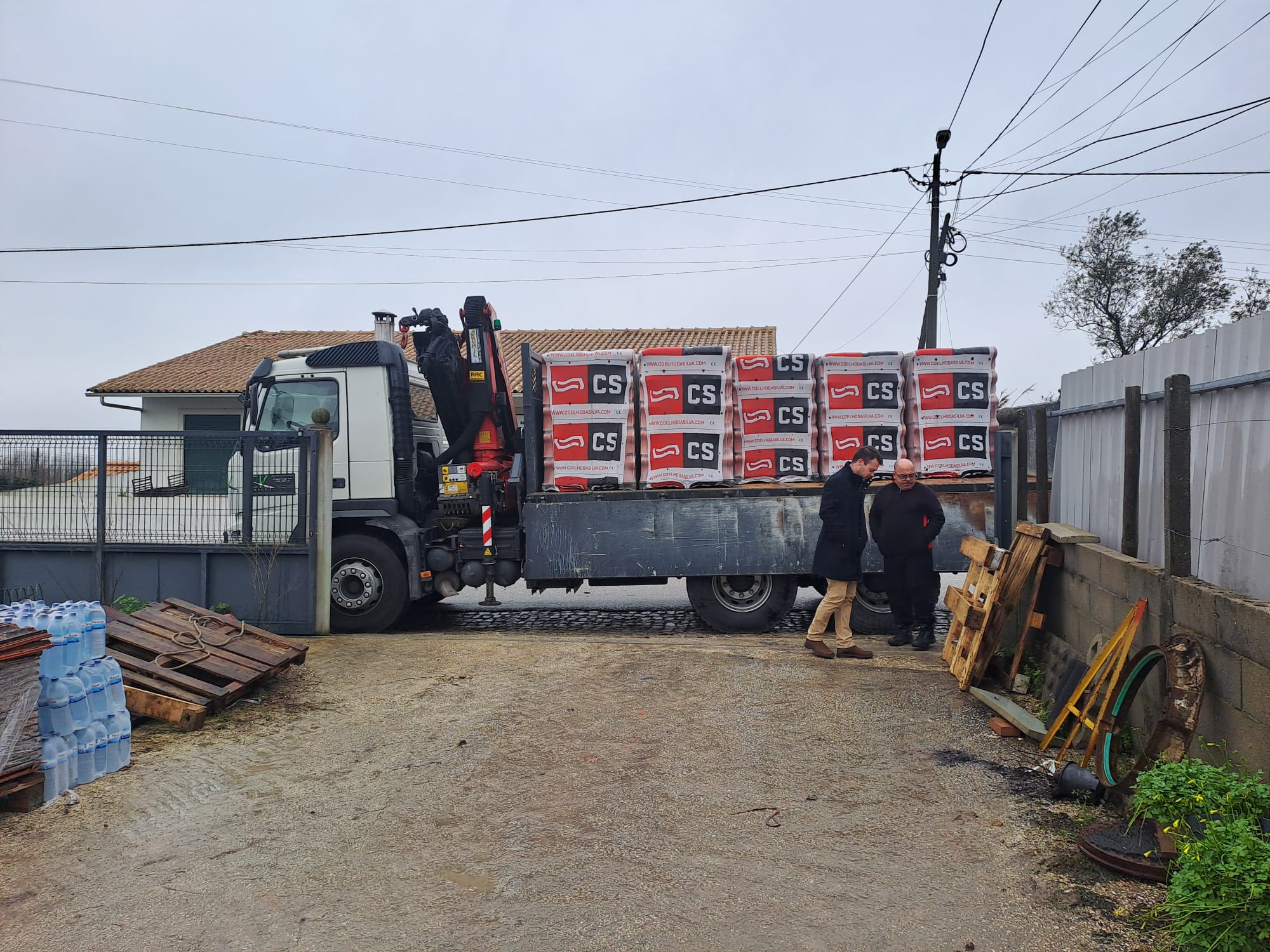 No total, foram reunidas 34 paletes de telhas e outros materiais de construção, que serão entregues em duas freguesias particularmente afetadas: Maceira, onde serão entregues mais de 20 paletes de telha, e Regueira de Pontes, que receberá 10 paletes.