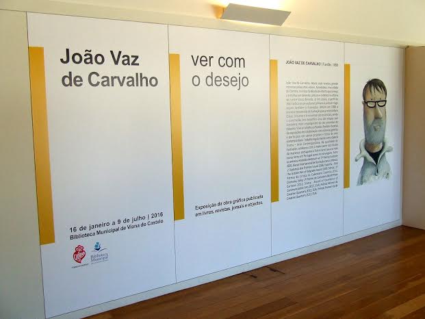 Até julho, a biblioteca acolhe mais uma exposição, desta vez com João Vaz de Carvalho, autodidata conimbricense, que começou a trabalhar em desenho, pintura e cerâmica, tendo-se dedicado depois em exclusivo à pintura e à ilustração. O pintor obtém, em 1988, a primeira encomenda de ilustração para a revista Marie Claire. O humor  e o nonsense são  essenciais, sendo a construção dos desenhos uma das etapas que considera  mais empolgantes do seu processo de trabalho.