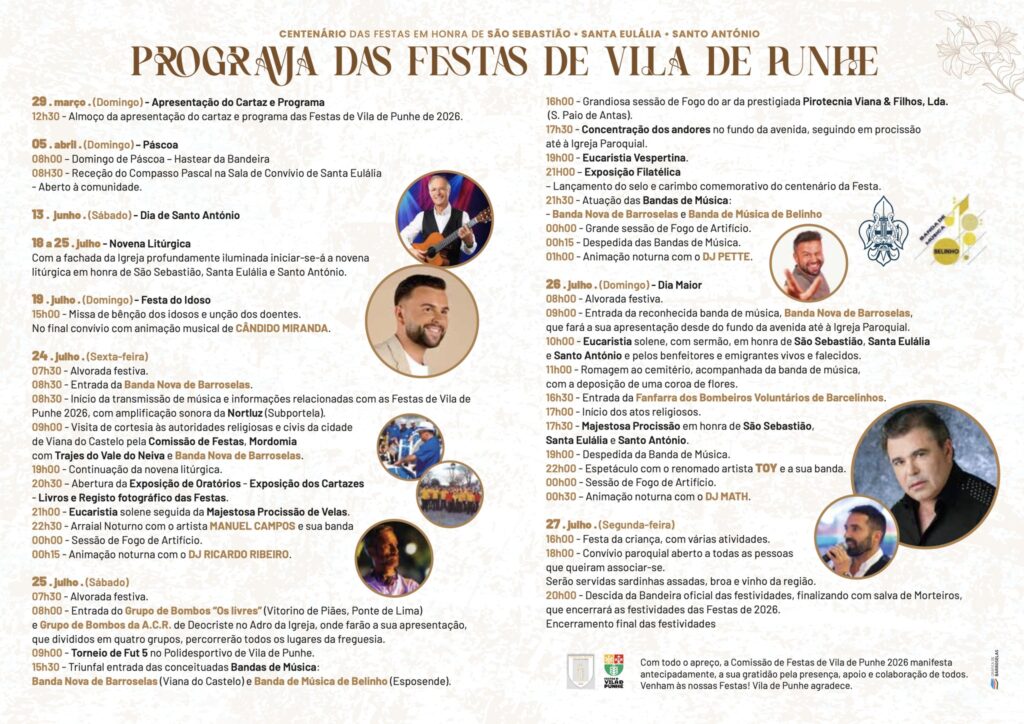 A tradicional Festa em Honra a Santa Eulália, Santo António e São Sebastião regressa entre 24 e 27 de julho a Vila de Punhe, em Viana do Castelo.