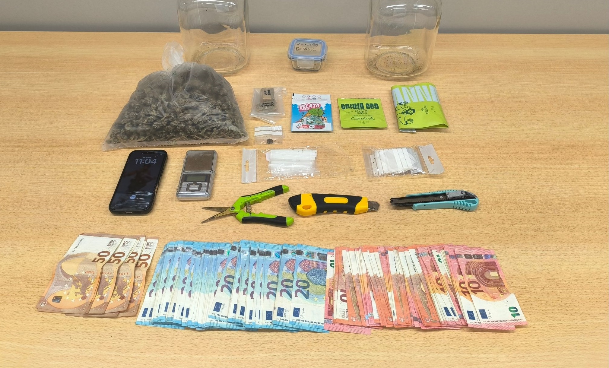 Da operação resultou a apreensão de 96 doses de liamba, 83 doses de haxixe, duas embalagens de liamba (CBD), uma balança de precisão, um telemóvel, diverso material de corte e acondicionamento de produto estupefaciente, bem como 2.860 euros em numerário.